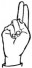 На ћирилици написано КОСТАДИН КРНЧЕВИЋ састоји се из 16 слова [?]. Исписано ћириличном једноручном азбуком за глувонеме: